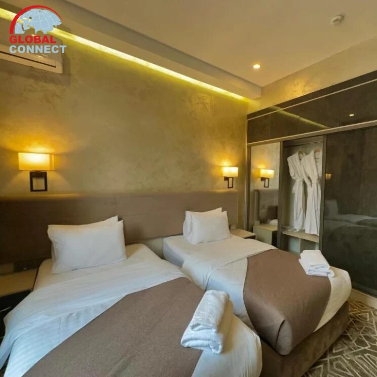 Comfortable Accommodations: The Florence Boutique Hotel, a Hotel Pro hotel in Tashkent, offers comfortable, air-conditioned rooms with a private bathroom and modern amenities. Each room includes a work desk, minibar, and free Wi-Fi, ensuring a pleasant stay.